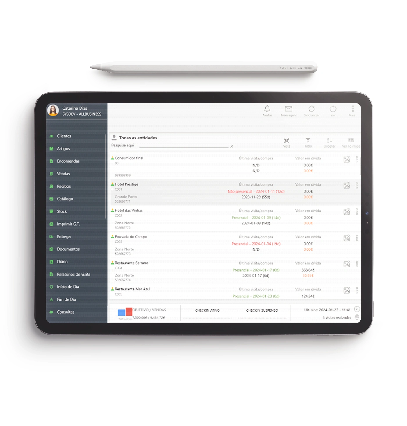 Permite trabalhar em qualquer lugar, mesmo sem cobertura de internet; os dados (encomendas, cobranças, etc.) podem ser sincronizados assim que haja rede disponível.
